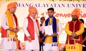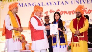 विशिष्ठ अतिथि उच्च शिक्षा राज्य मंत्री योगेंद्र उपाध्याय ने दीक्षांत समारोह के साथ नवजीवन में प्रवेश के लिए विद्यार्थियों को बधाई देते हुए कहा कि समाज व देश में मॉडल बनना पड़ेगा, लेकिन मेडल से मॉडल बनने की यात्रा कठिन है। जिन्हें मेडल नहीं मिले है उन्हें और संघर्ष करते हुए संकल्प लेना होगा कि कुछ सपनों के मर जाने से जीवन नहीं मरा करता है। अब आपको जीवन की नई शिक्षा ग्रहण करनी है। मात्र पढ़ने लिखने व कार्स करने का नाम शिक्षा नहीं है। मंगलायतन विश्वविद्यालय उत्कृष्ट शैक्षणिक गुणवत्ता, अनुसंधान और विस्तार गतिविधियों में उत्कृष्टता का प्रमाण है। उन्होंने आगे कहा कि लार्ड मैकाले की शिक्षा जो अब तक देश में दी जा रही थी उसे मानसिक रूप से अंग्रेज पैदा हो रहे थे अब प्रधानमंत्री नरेंद्र मोदी ने एनईपी 2020 लागू करके शिक्षा प्रणाली में व्यापक सुधार किया है। हमें अपने गौरवशाली इतिहास से वंचित रखा गया। आज शिक्षा में संस्कार, रोजगार, कौशल विकास से जोड़ा जा रहा है। डिजिटल तकनीकों पर विशेष ध्यान दिया जा रहा है। शिक्षा क्षेत्र को विशेष प्राथमिकता दी गई है। महिला सशक्तिकरण के तहत मेधावी छात्राओं को स्कूटी देने का प्रावधान रखा है। आज भारत आर्थिक स्थिति में पांचवें स्थान पर पहुंच गया है। जब राष्ट्र के प्रति कर्तव्यों को भान होगा तभी विकसित भारत का निर्माण होगा। हमें राष्ट्र भक्ति कूट कूट कर अपने दिमाग में रखनी चाहिए।