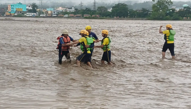 डीएम, एसएसपी ने मौके पर पंहुच स्वंय कार्लीगाड में 24 घंटे से फसे 70 लोगों को रेस्क्यू करवाया और सुरक्षित स्थान पर शिफ्ट किया।