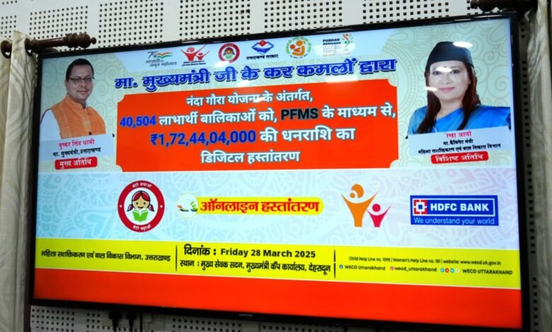 देहरादून: मुख्यमंत्री पुष्कर सिंह धामी ने शुक्रवार को मुख्यमंत्री कैंप कार्यालय से डीबीटी के माध्यम से नंदा गौरा योजना के 40 हजार 504 लाभार्थियों को वित्तीय वर्ष 2024-25 में लाभान्वित 01 अरब 72 करोड़ 44 लाख 04 हजार रुपए की धनराशि का वितरण किया।