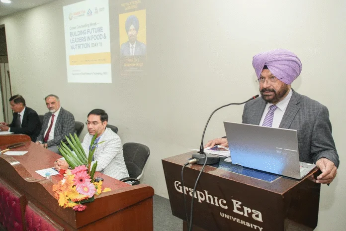 ग्राफिक एरा डीम्ड यूनिवर्सिटी में भविष्य के फूड सेफ्टी और न्यूट्रिशन लीडर्स को तैयार करने के लिए करियर काउंसलिंग सप्ताह शुरू हुआ। कार्यक्रम को मुख्य अतिथि के रूप में संबोधित करते हुए हिमालय वैलनेस कंपनी के अध्यक्ष डा. एस फारूक ने कहा कि बीते हुए कल से सीखे, आज पर कम करें और बेहतर भविष्य बनाएं। उन्होंने कहा कि एक जिज्ञासु मन ही भविष्य में नेतृत्व की क्षमता रखता है। छात्र-छात्राओं के लिए सवाल पूछना अत्यंत आवश्यक है क्योंकि यही सीखने, आत्मविश्वास बढ़ाने और विचारों को व्यवहार में लाने की पहली सीढ़ी है।