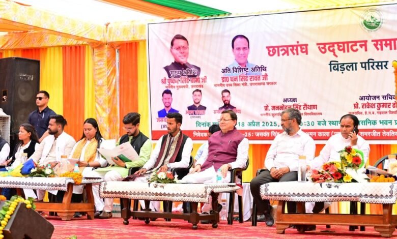 पौड़ी: प्रदेश के मुख्यमंत्री पुष्कर सिंह धामी ने आज हेमवती नंदन बहुगुणा गढ़वाल केंद्रीय विश्वविद्यालय परिसर, श्रीनगर में आयोजित छात्रसंघ उद्घाटन समारोह 2024-25 में मुख्य अतिथि के रूप में शिरकत की। उन्होंने दीप प्रज्ज्वलित कर कार्यक्रम का शुभारंभ किया।