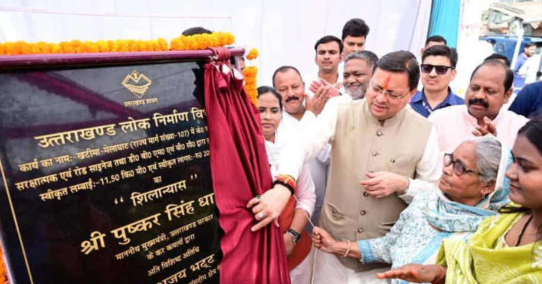 देहरादूनः मुख्यमंत्री पुष्कर सिंह धामी ने आज जनपद ऊधमसिंह नगर के खटीमा–मेलाघाट राज्य मार्ग (राज्य मार्ग संख्या 107) के पुनर्निर्माण कार्यों का विधिवत पूजा-अर्चना कर शिलान्यास किया। यह परियोजना ₹2,089.74 लाख की लागत से बनाई जाएगी। इसके अंतर्गत 11.50 किलोमीटर लंबी सड़क का पुनर्निर्माण, केसी ड्रेनेज सिस्टम, सड़क सुरक्षा कार्य, रोड साइनएज की स्थापना, तथा टीबीएम एवं बीसी द्वारा सुदृढ़ीकरण कार्य शामिल हैं।