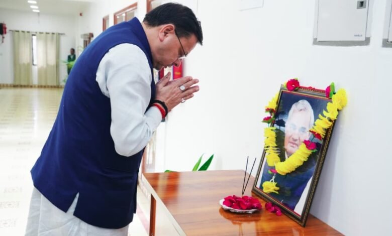 देहरादून: मुख्यमंत्री पुष्कर सिंह धामी ने पूर्व प्रधानमंत्री “भारत रत्न” अटल बिहारी वाजपेयी की पुण्यतिथि पर मुख्यमंत्री कैंप कार्यालय में उनके चित्र पर पुष्प अर्पित कर श्रद्धांजलि दी।
