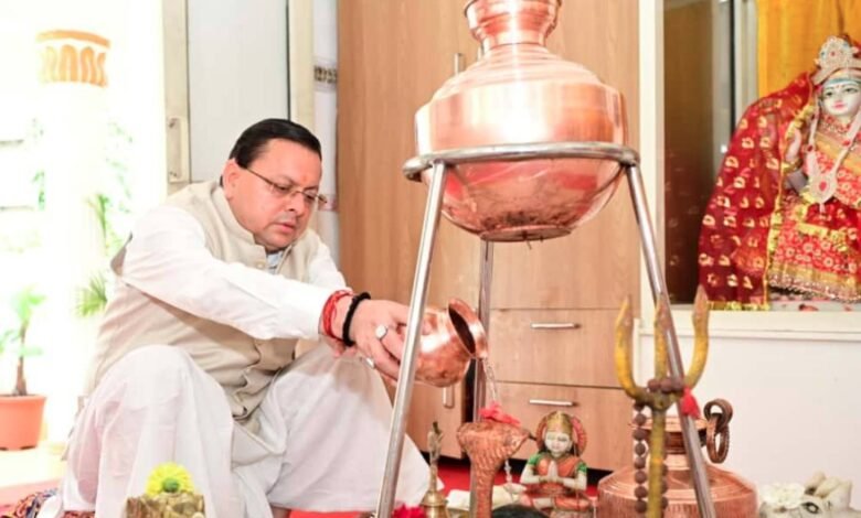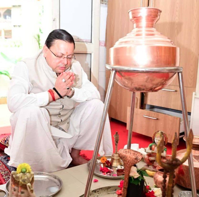 देहरादून: मुख्यमंत्री पुष्कर सिंह धामी ने सोमवार को शारदीय नवरात्रि की शुरुआत पर शासकीय आवास में पूर्ण विधि-विधान के साथ माँ आदिशक्ति भगवती की पूजा-अर्चना की।