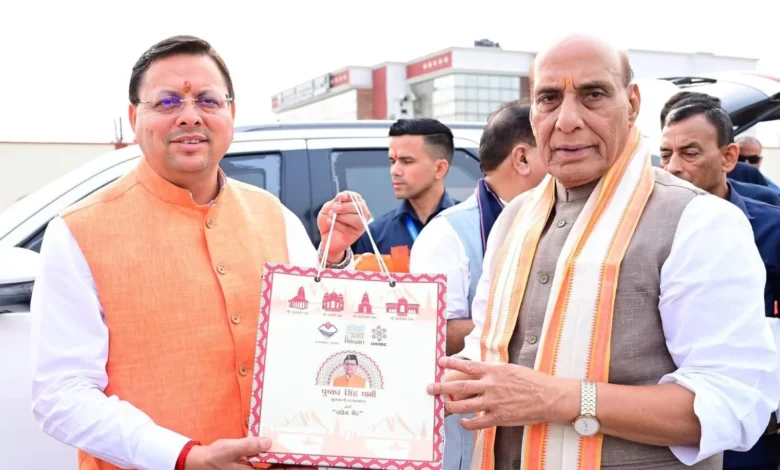 देहरादून: मुख्यमंत्री पुष्कर सिंह धामी ने जौलीग्रांट एयरपोर्ट पर केंद्रीय रक्षा मंत्री श्री राजनाथ सिंह के देवभूमि उत्तराखण्ड से प्रस्थान पर उन्हें चारों धामों का प्रसाद भेंट किया। इस दौरान मुख्यमंत्री ने उन्हें उत्तराखण्ड के स्थानीय उत्पादों का अम्ब्रेला ब्रांड ‘हाउस ऑफ़ हिमालयाज़’ के मिलेट्स उत्पाद भी भेंट किए।