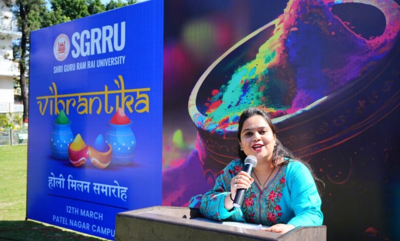 बुधवार को वायब्रंटिका-2025 का शुभारंभ कुलपति (प्रो.) डाॅ कुमुद सकलानी ने किया। कुलपति ने सभी डीन फेकल्टी सदस्यों, स्टाफ टीचिंग नाॅन टींचिग को होली पर्व की शुभकामनाएं दीं। इस अवसर पर श्री गुरु राम राय विश्वविद्यालय के माननीय प्रसीडेंट के सलाहकर डाॅ जे.पी. पचैरी, कुलसचिव डाॅ लोकेश गम्भीर ने फूलों की होली से कार्यक्रम का आगाज कर शुभकामनाएं प्रेषित कीं। इसके बाद गीत संगीत का दौर शुरू हुआ। गढ़वाली, कुमाऊंनी, हरियाणवी राजस्थानी गीतों की सुरलहरियों का सबने जमकर लुत्फ उठाया और जमकर डांस किया। एसजीआरआरयू के प्रांगण में गीत संगीत की बयार देर शाम तक बही।