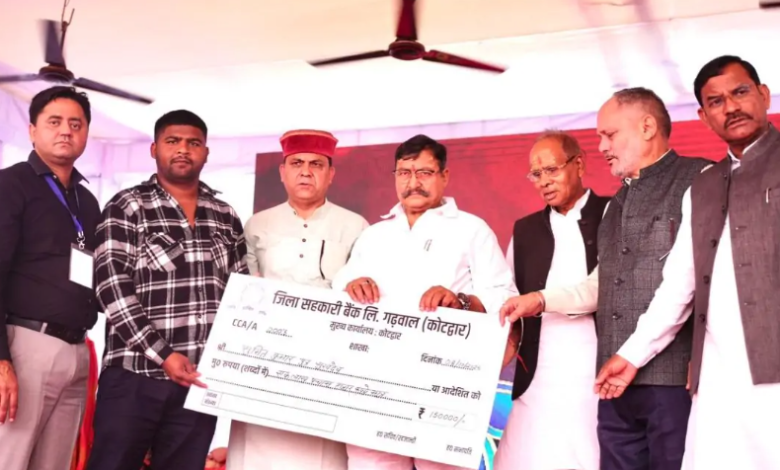 कार्यक्रम में मुख्य अतिथियों द्वारा पौड़ी और काल्जीखाल विकासखंड के 124 कृषकों को एक करोड़ 54 लाख रुपये का शून्य प्रतिशत ब्याज पर ऋण वितरित किया गया।