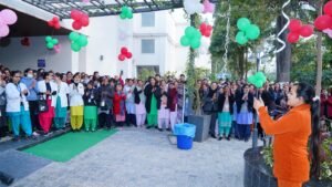 बुधवार को श्री महंत इन्दिरेश अस्पताल के ’हीलिंग पार्क’ में ’फस्र्ट डे-2025’ कार्यक्रम का शुभारंभ श्री गुरु राम राय इंस्टीट्यूट ऑफ मेडिकल एण्ड हैल्थ साइंसेज़ के प्राचार्य डाॅ अशोक नायक, श्री महंत इन्दिरेश अस्पताल के मुख्य चिकित्सा अधीक्षक डाॅ उत्कर्ष शर्मा, चिकित्सा अधीक्षक डाॅ अजय पंडिता, चिकित्सा अधीक्षक डाॅ गौरव रतूड़ी तथा नर्सिंग अधीक्षक अनीस एम.एस. ने केक काटकर किया।