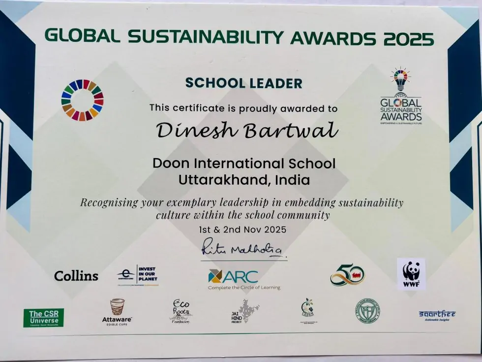 डॉ. बर्तवाल ने इस उपलब्धि का श्रेय स्कूल प्रबंधन, शिक्षकों और छात्रों की सामूहिक मेहनत को दिया। उन्होंने कहा, “मैं स्कूल प्रबंधन, शिक्षकों और छात्रों का आभारी हूं, जिन्होंने हर कदम पर मेरा सहयोग किया। यह सम्मान हमारी टीम की एकजुटता और समर्पण का प्रतीक है, जो स्थिरता के क्षेत्र में हमारे प्रयासों को और सशक्त बनाता है।”