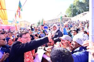पिथौरागढ़: मुख्यमंत्री पुष्कर सिंह धामी ने शनिवार को पिथौरागढ़ में जनसभा को संबोधित कर नगर निगम चुनाव में भाजपा की मेयर प्रत्याशी श्रीमती कल्पना देवलाल और अन्य पार्षद प्रत्याशियों को विजयी बनाने की अपील की। मुख्यमंत्री धामी ने जनसभा को संबोधित करते हुए कहा कि हमारा संकल्प पिथौरागढ़ को आदर्श और सुंदर शहर बनाना है और इसके लिए जरूरी है कि नगर निगम चुनाव में भाजपा की डबल इंजन सरकार बने। डबल इंजन सरकार बनने के बाद क्षेत्र का योजनाबद्ध तरीके से विकास हो सकेगा और पिथौरागढ़ ग्रीन और क्लीन सिटी बनने की ओर अग्रसर होगा।