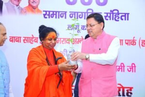 देहरादून: मुख्यमंत्री पुष्कर सिंह धामी ने मुख्यमंत्री आवास के मुख्य सेवक सदन, में समान नागरिक संहिता (UCC) लागू करने पर आयोजित सम्मान समारोह में प्रतिभाग किया।