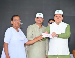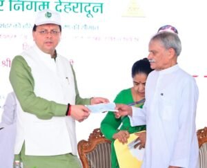 देहरादून: मुख्यमंत्री पुष्कर सिंह धामी ने बुधवार को देहरादून नगर निगम के अंतर्गत केदारपुरम में योगा पार्क एवं अन्य विकास कार्यों का लोकार्पण एवं शिलान्यास किया। इस अवसर पर उन्होंने एआई चैटबॉट ‘निगम सारथी’ लॉन्च किया और हरित नीति के डोक्यूमेंट का अनावरण भी किया। मुख्यमंत्री ने पर एक पेड़ माँ नाम के नाम के तहत रूद्राक्ष का पौधा रोपा, जो सरकार द्वारा चलाये गये बृहद पौधारोपण अभियान के तहत नगर निगम क्षेत्र देहरादून के अन्तर्गत इस वर्ष रोपा गया एक लाखवां पौधा था। कार्यक्रम में मुख्यमंत्री ने स्वच्छता सम्मान सेनानियों और कर निरीक्षकों को सम्मानित भी किया। इस अवसर पर मुख्यमंत्री ने नशा मुक्ति के लिए सामूहिक शपथ भी दिलाई।