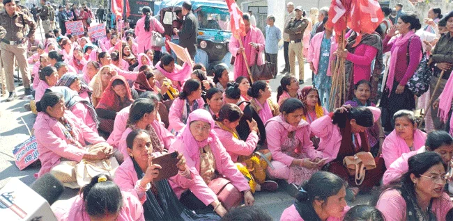 सीटू के संबद्ध उत्तराखंड आशा कार्यकत्री यूनियन के बैनर तले राजपुर रोड स्थित सीटू कार्यालय से आशाओं ने जुलूस निकाला। गांधी पार्क, राजपुर रोड़, दिलाराम चौक से होते हुए जब आशाएं कैन्ट रोड़ स्थित हाथीबड़कला के पास पहुंची तो पुलिस ने बैरिकेडिंग पर रोक दिया। इस दौरान कुछ देर पुलिस से धक्कामुक्की के बाद आशाएं सड़क पर ही धरने पर बैठ गईं। उन्होंने धामी सरकार पर वादा खिलाफी का आरोप लगाते हुए नारेबाजी की। इस मौके पर नगर मजिस्ट्रेट प्रत्युष सिंह को ज्ञापन सौंपा गया। उन्होंने मुख्यमंत्री से शीघ्र वार्ता कराने का आश्वासन दिया। इस पर धरना समाप्त किया गया।