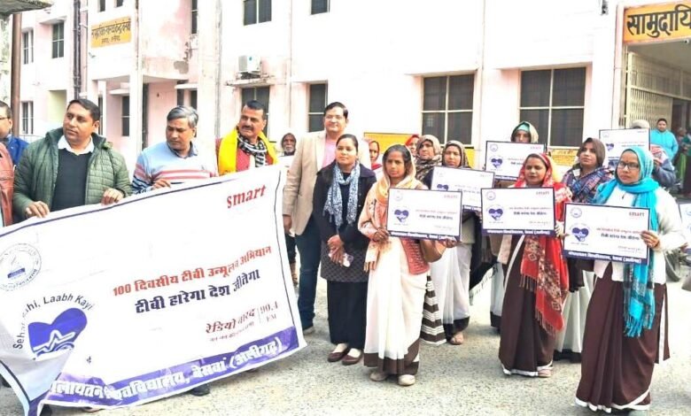 अलीगढ़: मंगलायतन विश्वविद्यालय के पत्रकारिता एवं जनसंचार विभाग ने सामुदायिक रेडियो नारद 90.4 एफएम और स्वयंसेवी संस्था स्मार्ट के संयुक्त तत्वावधान में बेसवां स्थित सामुदायिक स्वास्थ्य केंद्र में “100 दिवसीय टीबी उन्मूलन जागरूकता अभियान चलाया गया जोकि स्मार्ट संस्था द्वारा वित्तपोषित कार्यक्रम “सेहत सही, लाभ कई” का हिस्सा है। कार्यक्रम का आयोजन डाक्टर संतोष कुमार गौतम के निर्देशन में हुआ। लोगों ने पूर्ण समर्पण की भावना से भारत को 2025 तक टीबी मुक्त बनाने की शपथ लेते हुए कहा कि टीबी हारेगा, देश जीतेगा।