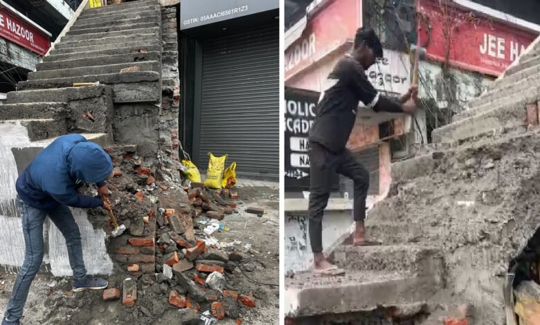 MDDA का एक्शन, अवैध रूप से निर्मित सीढ़ियों को किया ध्वस्त