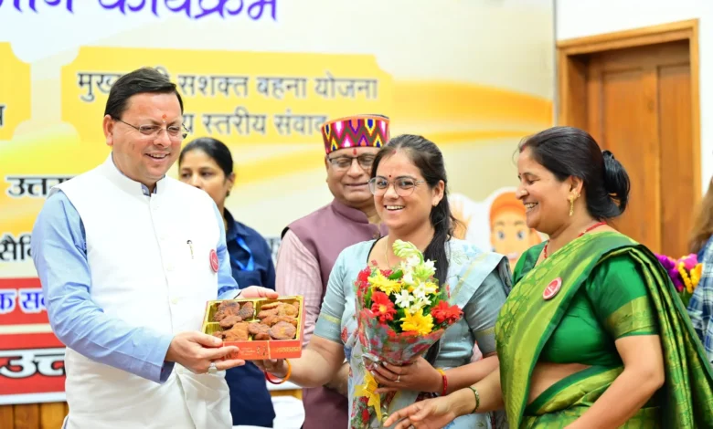 देहरादून: मुख्यमंत्री पुष्कर सिंह धामी ने सोमवार को मुख्यमंत्री आवास स्थित मुख्य सेवक सदन में मुख्यमंत्री सशक्त बहना उत्सव योजना के अन्तर्गत सराहनीय कार्य करने वाले महिला स्वयं सहायता समूहों को सम्मानित किया और उनसे संवाद भी किया। इस अवसर पर मुख्यमंत्री ने मुख्यमंत्री उद्यमशाला योजना का शुभंकर एवं लोगो लॉन्च किया तथा हाउस ऑफ हिमालयाज के नये उत्पाद एवं वेबसाइट का लोकार्पण किया।