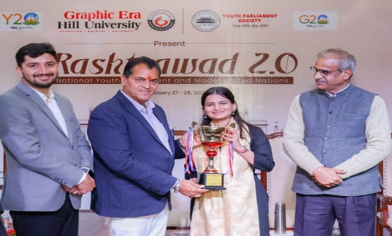 देहरादून: ग्राफिक एरा में राष्ट्रवाद 2.0 के नाम से आयोजित यूथ पार्लियामेंट में साक्षी शर्मा ने बाजी मारी। राज्य के वित्त व संसदीय मंत्री प्रेमचंद्र अग्रवाल ने शिक्षित युवाओं से राजनीति में आने का आह्वान किया।