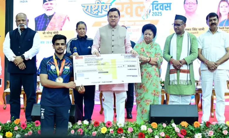 देहरादून: मेजर ध्यानचंद जयंती के अवसर पर बहुउद्देश्यी क्रीड़ा हाल परेड ग्राउंड में आयोजित राष्ट्रीय खेल दिवस – 2025, समारोह को संबोधित करते हुए, मुख्यमंत्री पुष्कर सिंह धामी ने कहा कि खेल और खेल भावना समाज को ऊर्जा, अनुशासन और प्रेरणा प्रदान करती है। उन्होंने कहा कि मेजर ध्यानचंद ने अपनी स्टिक के जादू से पूरी दुनिया को भारत की खेल शक्ति से परिचित कराया। उन्होंने हिटलर तक को ये बता दिया कि देश भक्ति आखिर क्या होती है। उन्हीं के आदर्शों पर चलकर आज प्रधानमंत्री नरेंद्र मोदी के नेतृत्व में हमारा देश भी एक वैश्विक खेल शक्ति बन रहा है, इसमें उत्तराखंड भी अपनी भूमिका निभाने के लिए कमर कस चुका है। उन्होंने कहा कि प्रधानमंत्री “खेलो इंडिया” और “फिट इंडिया मूवमेंट” जैसे कार्यक्रमों के माध्यम से देश में खेल संस्कृति को प्रोत्साहित करने का प्रयास कर रहे हैं।