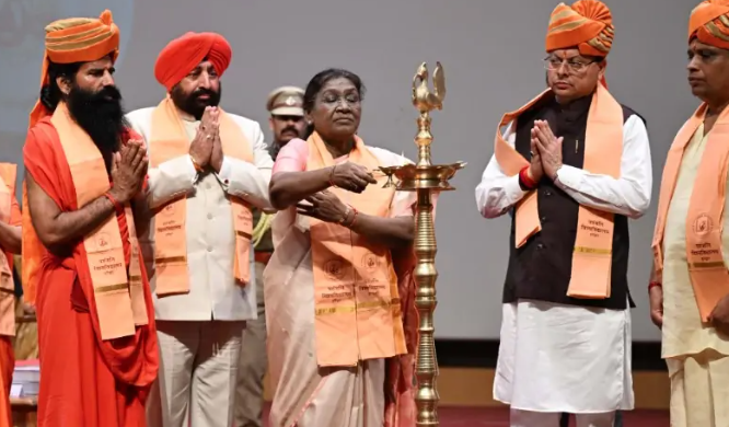 राज्यपाल लेफ्टिनेंट जनरल गुरमीत सिंह (से नि.) ने राष्ट्रपति द्रौपदी मुर्मु का हार्दिक स्वागत एवं अभिनंदन करते हुए उनके देवभूमि आगमन को गर्व का क्षण बताया। राज्यपाल ने कहा कि देवभूमि उत्तराखंड केवल एक राज्य नहीं, बल्कि योग, आयुर्वेद और अध्यात्म का प्राण-केंद्र है। इस पवित्र धरती से प्रचलित योग और आयुर्वेद की परंपरा ने न केवल भारत को, बल्कि समूचे विश्व को स्वास्थ्य, संतुलन और सद्भाव का संदेश दिया है। उत्तराखंड की यह ऋषि-परंपरा आज भी हमें यह प्रेरणा देती है कि ज्ञान का सर्वोच्च उद्देश्य केवल आत्म-विकास नहीं, बल्कि विश्व-कल्याण है।