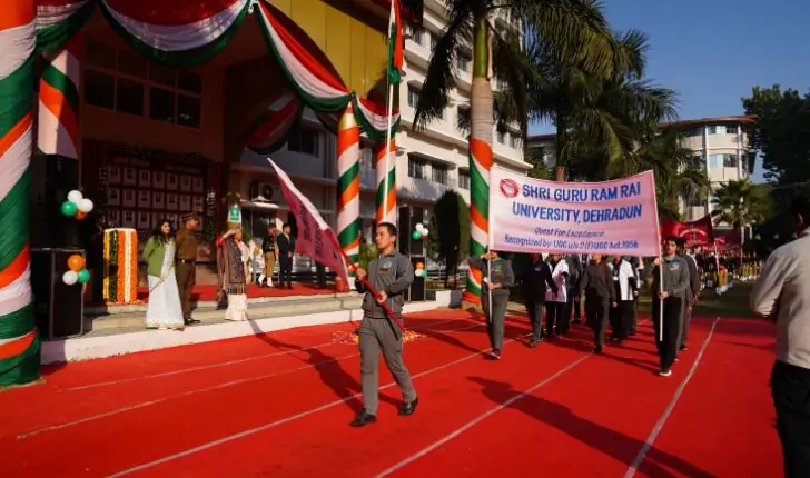 देहरादून: श्री गुरु राम राय विश्वविद्यालय (एसजीआरआरयू) सहित एसजीआरआर ग्रुप के संस्थानों में गणतन्त्र दिवस समारोह धूमधाम के साथ मनाया गया। दरबार साहिब श्री गुरु राम राय विश्वविद्यालय सहित एसजीआरआर के विभिन्न संस्थानों में गणतन्त्र दिवस पर मनमोहक कार्यक्रम आयोजित किए गए। श्री गुरु राम राय विश्वविद्यालय के एनएसएस, एनसीसी कैडेट्स, एनसीसी छात्र.छात्राओं सहित विश्वविद्यालय के 11 संघटक स्कूलों के छात्र.छात्राओं ने अनुशासित परेड से सबका मन मोह लिया।
