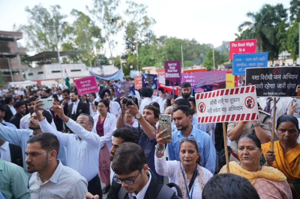 बार एसोएिशन देहरादून की ओर से आहुत इस विशाल रैली में श्री गुरु राम राय विश्वविद्यालय से करीब दो हजार छात्र-छात्राओं और फैकल्टी सदस्यों ने भाग लेकर समाज को नशा छोड़ने का संदेश दिया। रैली में देहरादून बार एसोसिएशन, वकीलों, विभिन्न सामाजिक संगठनों एवम् दूनवासियों ने प्रतिभाग किया। जिला न्यायालय परिसर से देहरादून में उत्तराखंड हाईकोर्ट नैनीताल के माननीय न्यायाधीश जस्टिस मनोज तिवारी एवं बार एसोसिएशन देहरादून के अध्यक्ष मनमोहन कंडवाल ने हरी झंडी दिखाकर रवाना किया। जिला न्यायालय परिसर से प्रारम्भ होकर गांधी पार्क पर जाकर रैली सम्पन्न हुई ।
