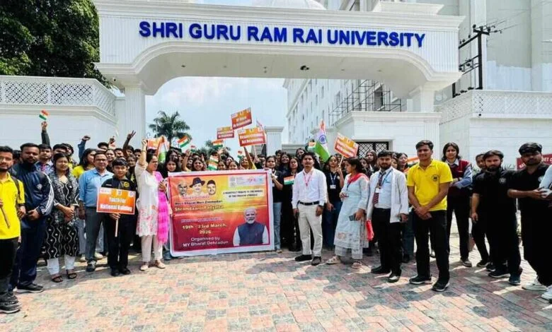देहरादून: शहीदी दिवस के अवसर पर मेरा युवा भारत देहरादून के तत्वावधान में श्री गुरु राम राय विश्वविद्यालय में पदयात्रा का आयोजन किया गया।