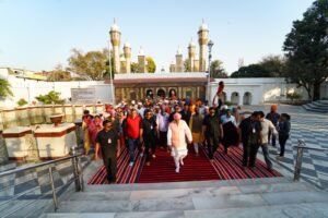देहरादून: पंजाब के विभिन्न हिस्सों से 150 सदस्यीय पैदल संगत का जत्था बुधवार शाम को श्री दरबार साहिब पहुंचा। शाम 5ः30 बजे श्री दरबार साहिब देहरादून के दर्शनी गेट पहुंचते ही पैदल संगत का पुष्प वर्षा व ढोल नगाड़ों की थाप के साथ दूनवासियों व दरबार श्री गुरु राम राय जी महाराज, प्रबन्ध समिति एवम् श्री झंडा जी मेला आयोजन समिति ने जोरदार स्वागत किया। दर्शनी गेट व श्री दरबार साहिब परिसर में श्री दरबार साहिब के सज्जादानशीन श्रीमहंत देवेन्द्र दास जी महाराज की अगुवाई में पुष्प वर्षा के बीच संगत का जोरदार स्वागत हुआ। श्री महाराज जी ने संगत को दर्शन दिए व आशीर्वाद दिया। श्री दरबार साहिब परिसर व निकटवर्ती समूचा क्षेत्र श्री गुरु राम राय जी महाराज के गगनभेदी जयकारों से गूंज उठा।
