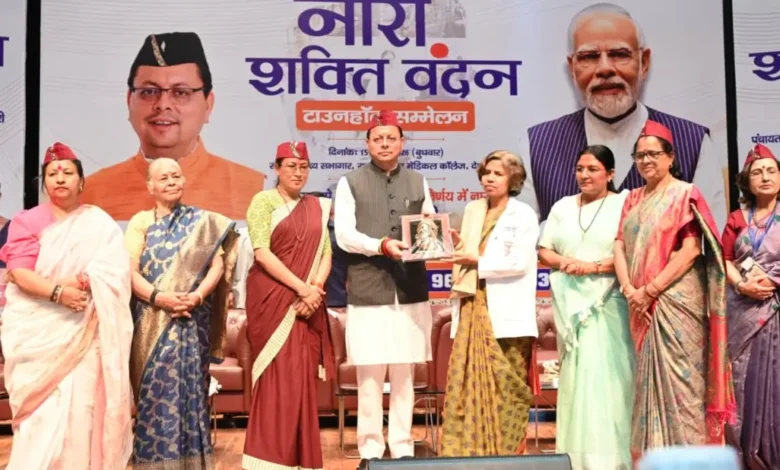 देहरादून: राजकीय दून मेडिकल कॉलेज में नारी शक्ति वंदन टाउन हॉल सम्मेलन का आयोजन किया गया। इस अवसर पर मुख्यमंत्री पुष्कर सिंह धामी ने प्रधानमंत्री के दूरदर्शी नेतृत्व की सराहना करते हुए नारी शक्ति वंदन अधिनियम को देश की मातृशक्ति के सशक्तिकरण की दिशा में एक ऐतिहासिक कदम बताया।