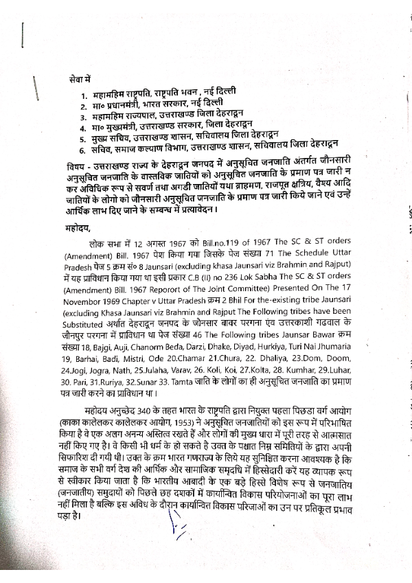 एडवोकेेट नेगी का तर्क है कि 1967 के बाद कोई भी अध्यादेश जारी नहीं किया गया है। इसके अलावा संसद में भी अनुसूचित जनजाति क्षेत्र का कोई विधेयक पारित नहीं हुआ है। आर्टिकल 244 में शेड्यूल पांच और छह में उत्तराखंड को कही भी एसटी का दर्जा नहीं दिया गया है। ऐसे में जौनसार क्षेत्र में जितने भी सर्टिफिकेट ब्राह्मणों और स्वर्ण राजपूतों को जारी हो रहे हैं वो गैरकानूनी हैं। इसका खमियाजा प्रदेश के सामान्य श्रेणी के अभ्यर्थियों को भुगतना पड़ रहा है। आरक्षण के नाम पर जौनसार के नेता जनता को गुमराह कर राजनीतिक रोटियां सेंक रहे हैं।