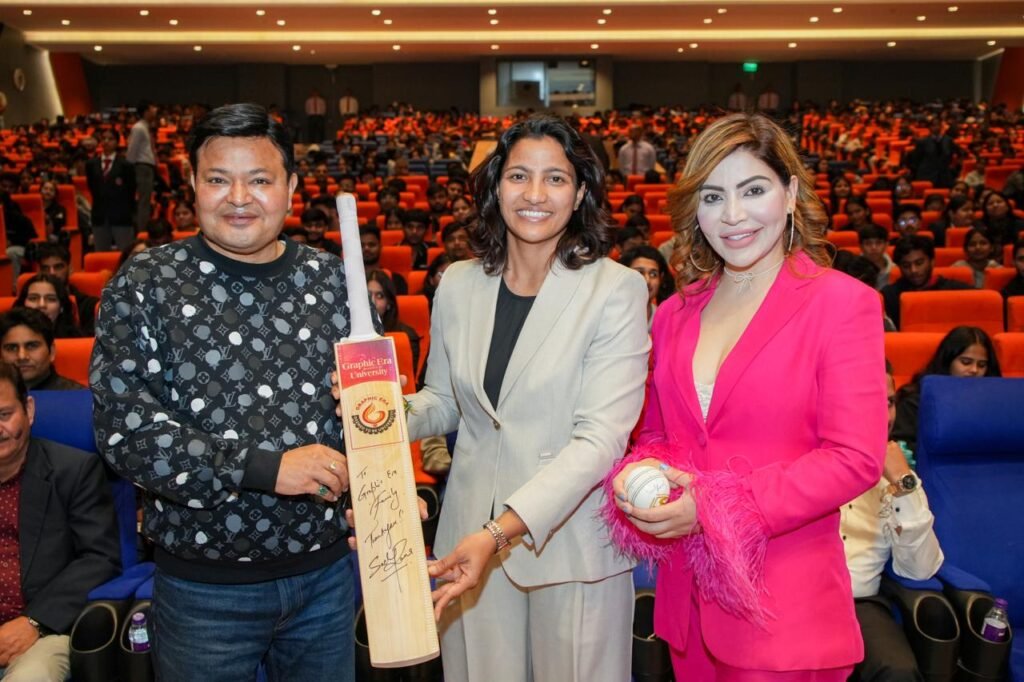 ग्राफिक एरा ग्रुप ऑफ इंस्टीट्यूशंस के चेयरमैन डॉ कमल घनशाला ने कहा कि घायल होने के बाद दुबारा नेशनल टीम में शामिल होना एक बहुत बड़ी चुनौती थी। स्नेह राणा ने पैर की चोट ठीक होने पर पांच साल बाद दुबारा नेशनल टीम में अपनी जगह बनायी। ये आसान नहीं था। अभिभावकों ने 15-16 साल पहले जब महिला क्रिकेट कैरियर नहीं होता था, तब स्नेह राणा पर विश्वास जताते हुए उन्हें इस क्षेत्र में आगे बढ़ने का अवसर दिया, यह बहुत बड़ी बात है। स्नेह राणा देश और खासकर उत्तराखंड की लड़कियों के लिए बहुत बड़ी प्रेरणा हैं, अब लड़कियां भी क्रिकेट में कैरियर बनाने का सपना देख और पूरा कर सकती हैं।