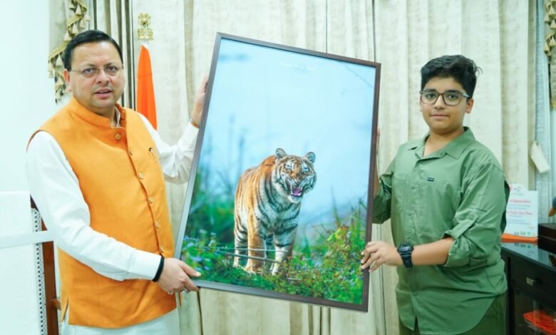 देहरादून: मुख्यमंत्री पुष्कर सिंह धामी से मुख्यमंत्री आवास में अंतरराष्ट्रीय बाघ दिवस के अवसर पर छात्र व प्रतिभाशाली वाइल्ड लाइफ फोटोग्राफर शौर्य प्रताप बिष्ट ने भेंट की | मुख्यमंत्री धामी ने शौर्य प्रताप बिष्ट की उत्कृष्ट रचनात्मक वन्य जीव फोटोग्राफी की प्रशंसा की तथा उन्हें सम्मानित किया |